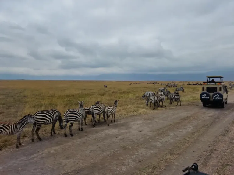 - Dag 1–7: 7 dagars safari till Tarangire, Central Serengeti och Ngorongoro-kratern