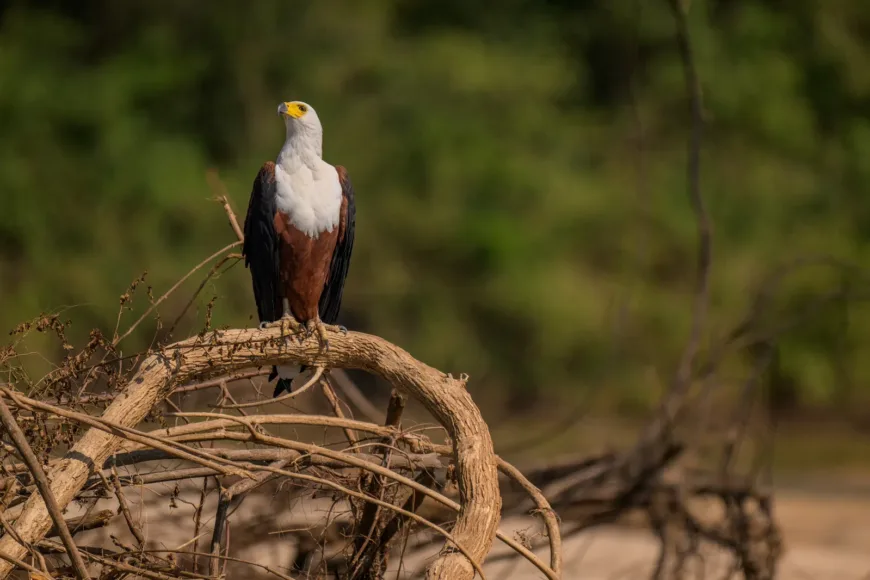 - Nationalparken omfattar över 30 000 kvadratkilometer av savann, skog och flodlandskap.